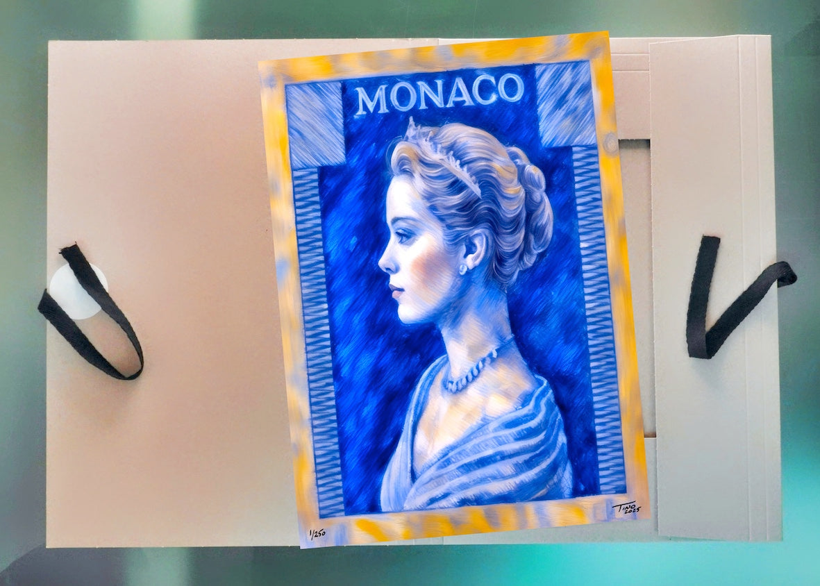 Monaco Grace Kelly 1957 Pastel Artwork - Bleu lague